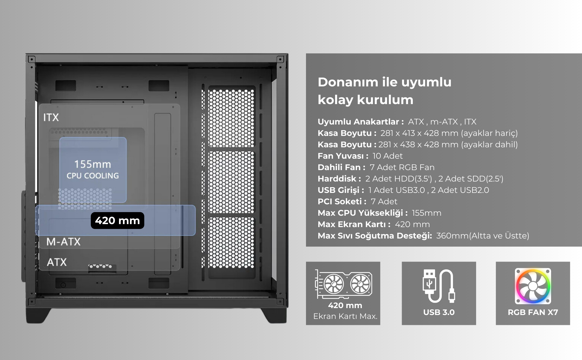 - Uyumlu Anakartlar : ATX , m-ATX , ITX