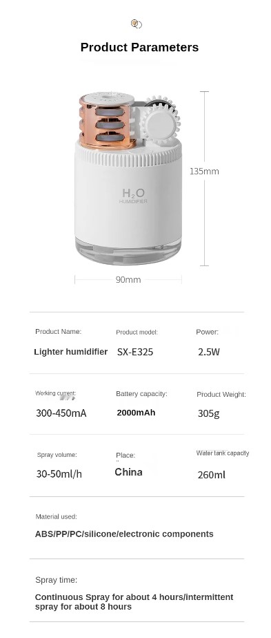 Çakmak Şeklinde Nemlendirici, Ultrasonik Atomizer, Taşınabilir Hava Nemlendirici