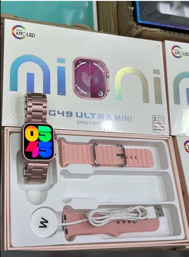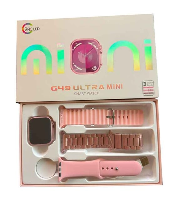 G49 Ultra Mini Amoled Ekran Silikon + Metal Kordonlu 41 mm Akıllı Saat