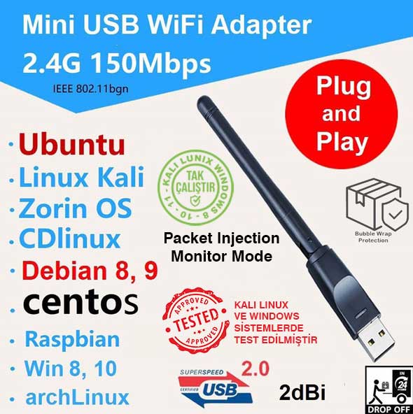 Ürünümüz siz değerli müşterilerimize gönderilmeden önce kali linux sistemlerde pocket injection, monitor mod dahil tek tek test edilmektedir, sorunlu ürün sizlere gönderilmez. Çekim mesafesine örnek vermemiz gerekir ise; 2 katlı beton ofisimizde, iki kattan da bağlanılabilmektedir.