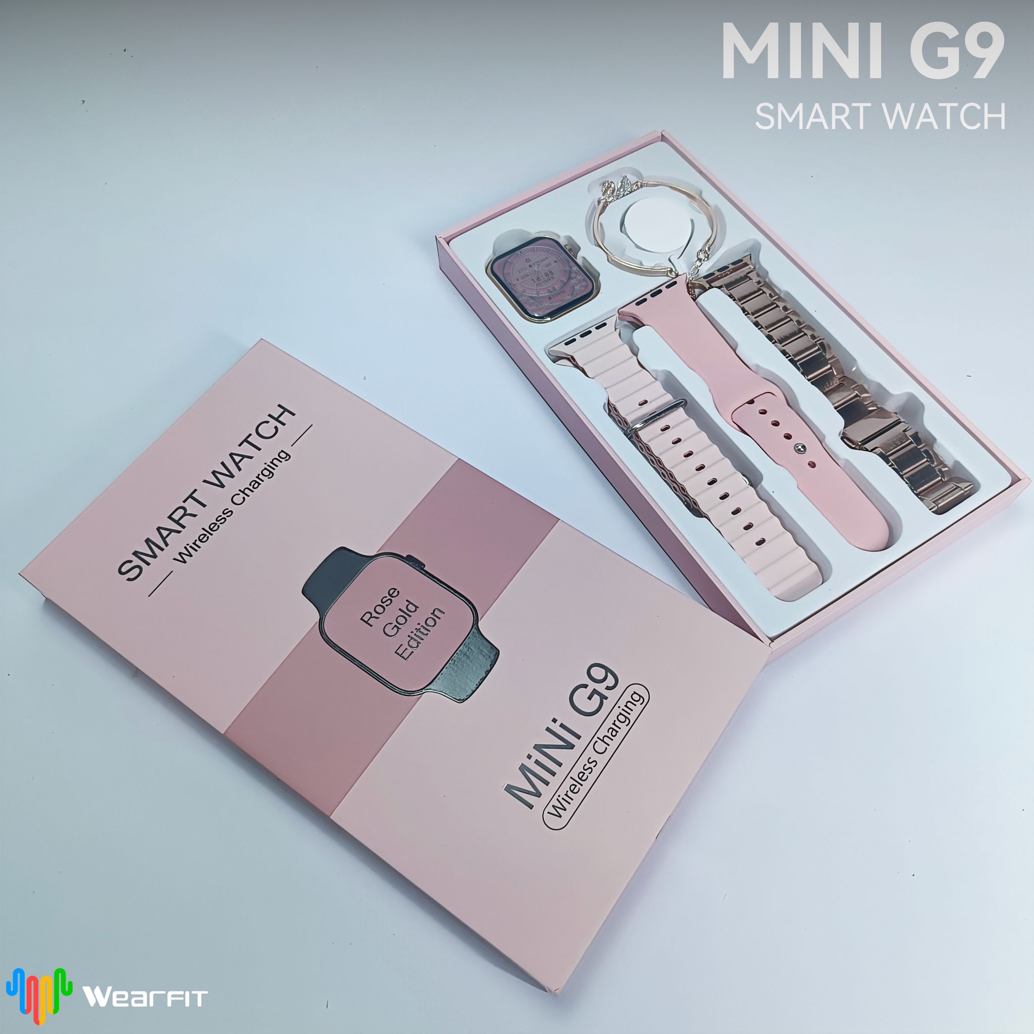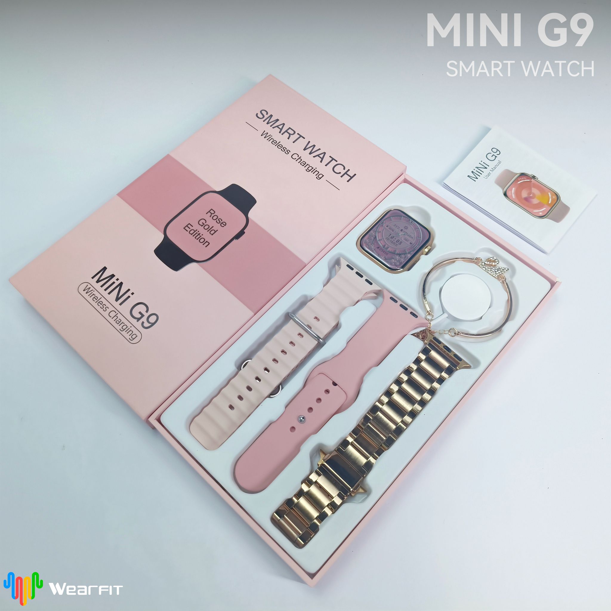 Mini G9 Bileklik Hediyeli, 3 Kordonlu, Gold Rose 41mm Akıllı Saat