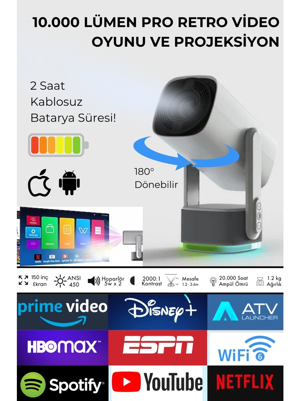 • Taşınabilir Projektör ile oyun ve sinema deneyimlerinizi bambaşka bir seviyeye taşıyın!