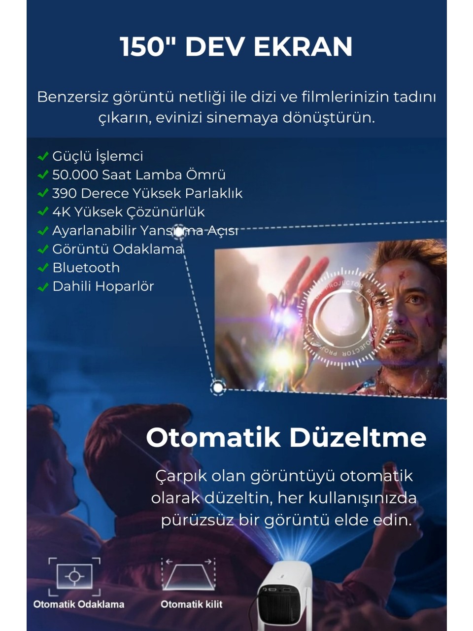 • Sinema Salonu Keyfi: 150 inçe kadar Ekran Yansıtma