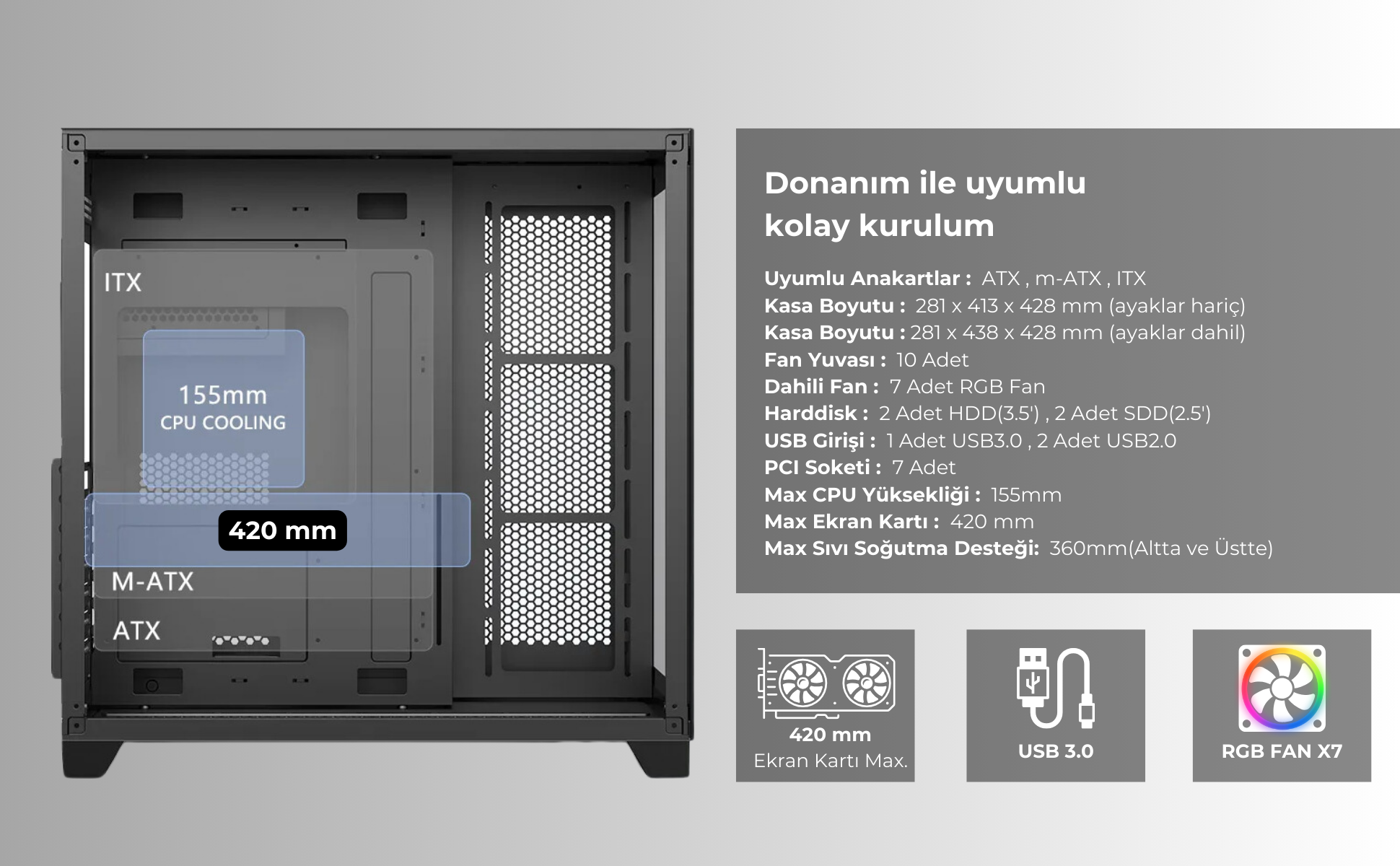 • Uyumlu Anakartlar :  ATX , m-ATX , ITX