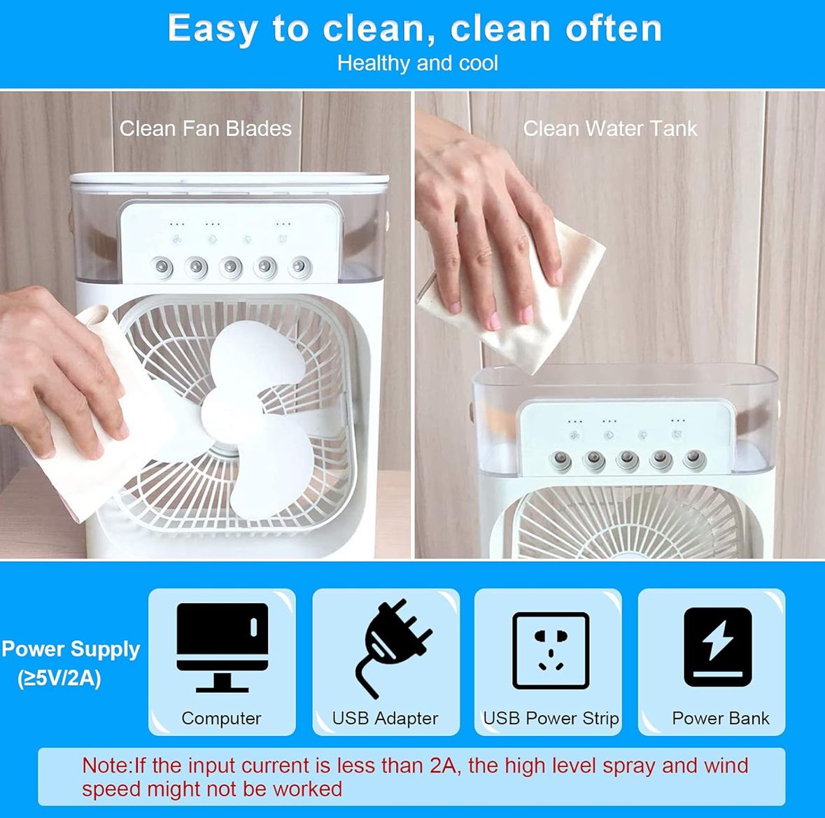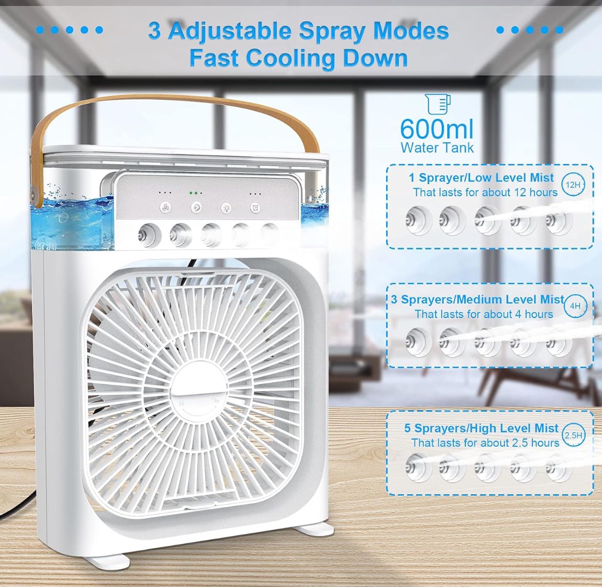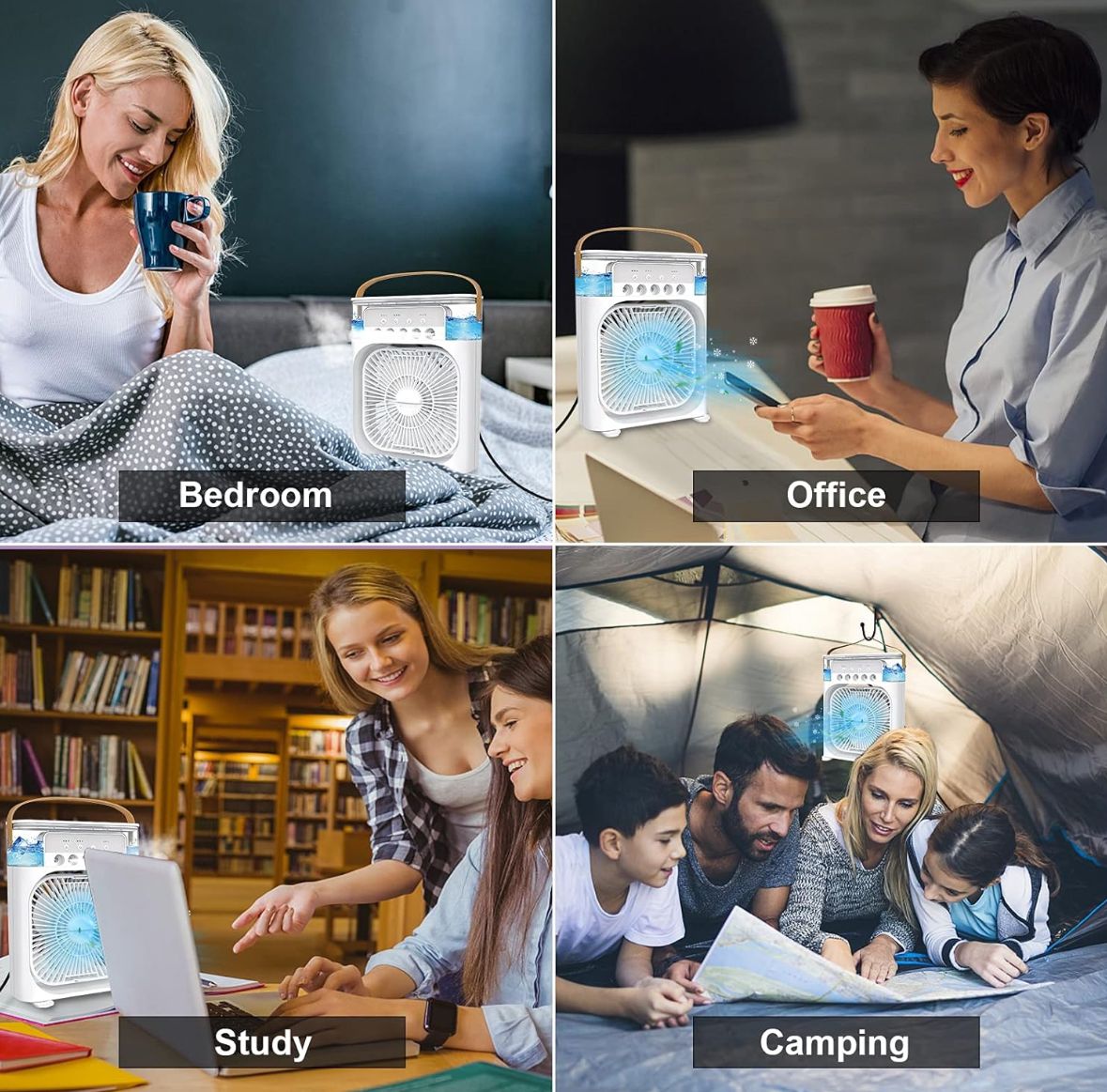 Hava soğutucunun kompakt ve el tipi tasarımı ev, mutfak, yatak odaları, yatakhaneler, çalışma masası, ofis, dış mekan çadırları, kamp için mükemmeldir.