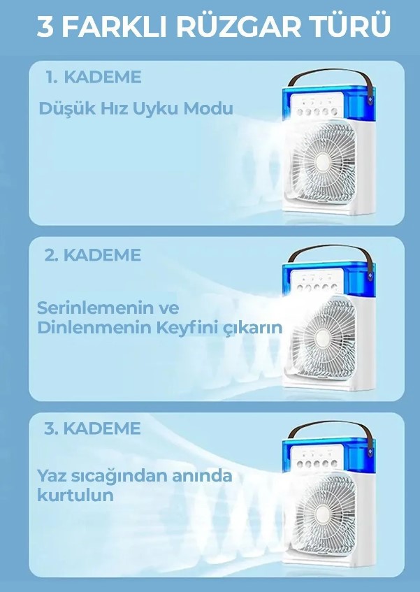 Kişisel mini klima gün boyu kuru havadan uzak durmanızı ve nemlli havadan faydalanmanızı sağlar.