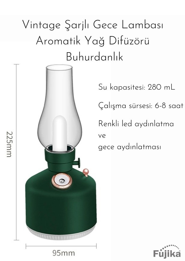 Vintage Şarjlı Gece Lambası – Aromatik Yağ Difüzörü – Buhurdanlık