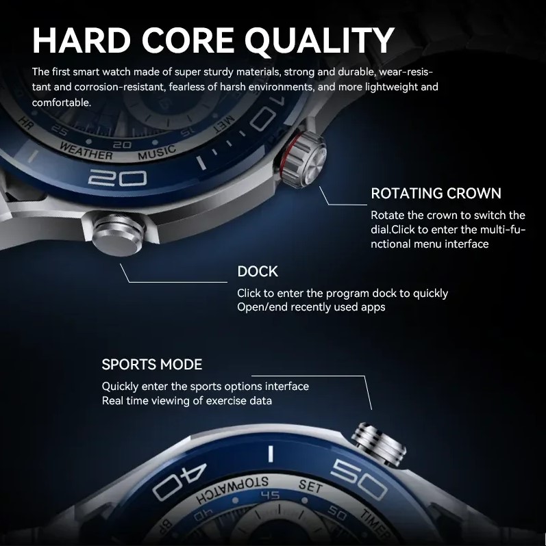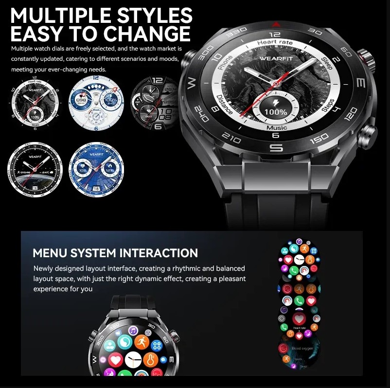 Bu yeni yükseltme, akıllı saate daha iyi donanım ve özelliklerle daha iyi bir görünüm kazandırır. 2023’ün en yeni Lüks yuvarlak saati, 1,52 İNÇ yüksek çözünürlüklü geniş ekranla donatılmıştır, en yeni üst düzey SF32LB551 çipi ve 3 saat kayışı, 1 çelik 1 silikon 1 ile donatılmıştır deri, Kayışı ruh halinize ve mekana göre değiştirebilirsiniz. Ayrıca saat kadranlarının özelleştirilmesi, kalp atış hızı izleme, Kan basıncı, çoklu spor modları ve en önemlisi arama yapmak için dahili bir hoparlör ve mikrofon vardır ve Çok İşlevli NFC’ye sahiptir ve Sesli Asistan, hepsi tek bir yerde, Daha fazla ayrıntı bildiğinizde onu daha çok seveceksiniz